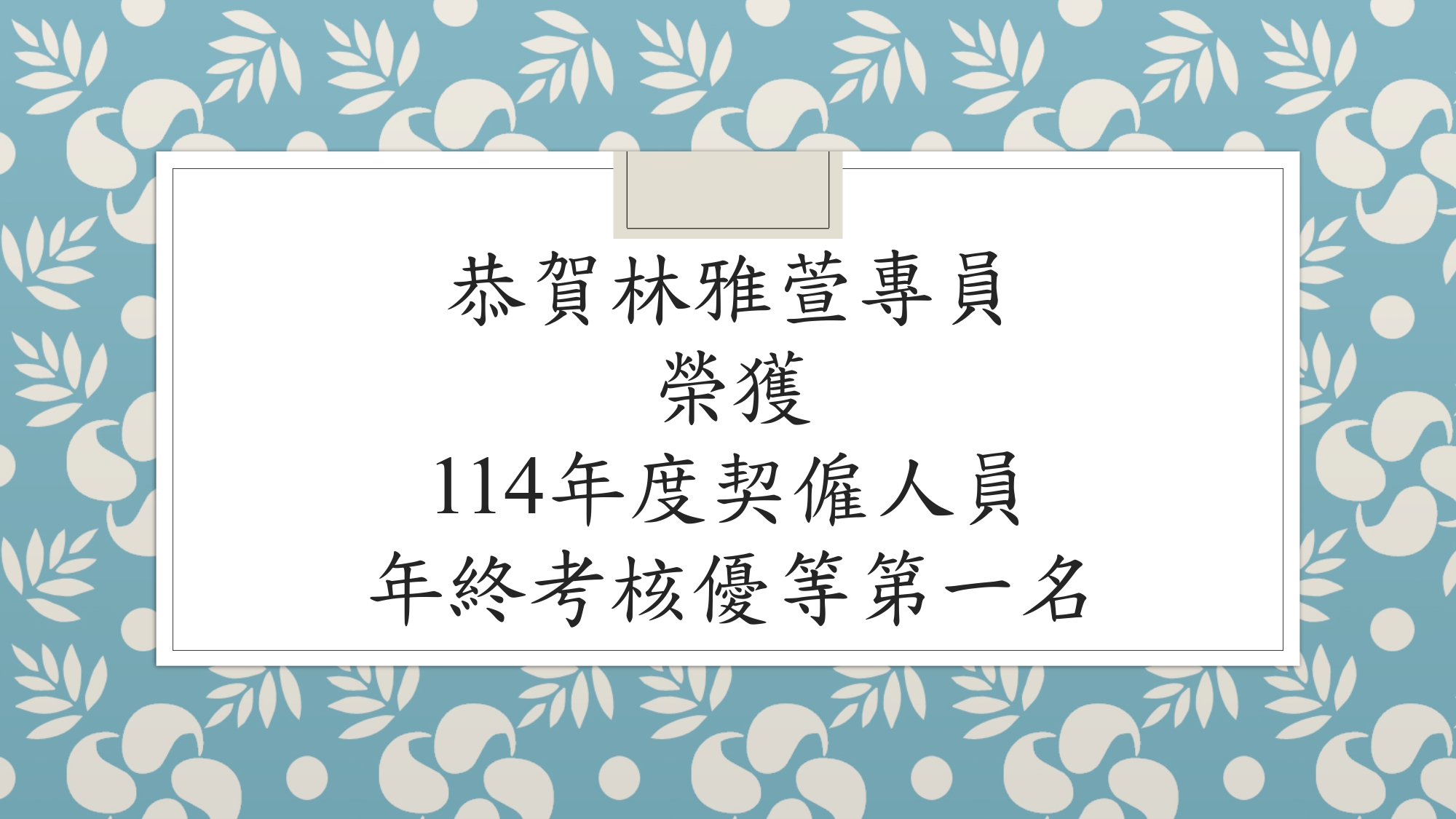 〔獲獎公告〕恭賀 潘怡帆老師 榮獲113年度新聘傑出人才獎勵